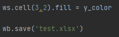 음영색을 채울 셀에 만든 변수를 넣여주면 됩니다.( ws.cell(3,2).fill=y_color )