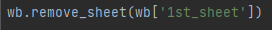 dell wb['sheet name'] 이렇게 해도 시트를 삭제할 수 있습니다.