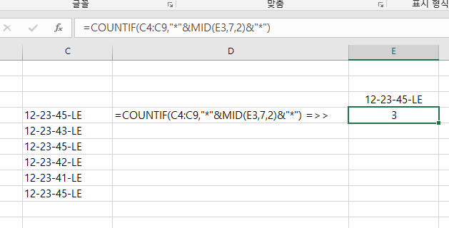 저는 '45'가 포함된 셀의 개수를 찾고 싶어요.