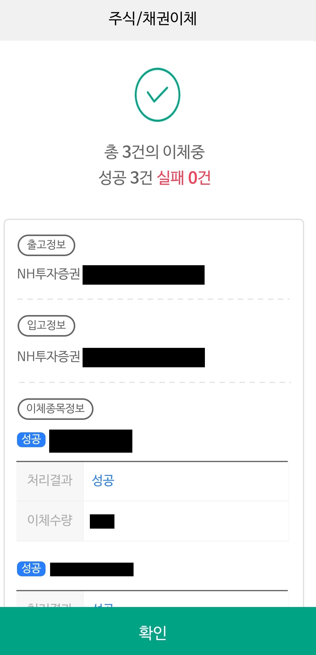주식/채권 이체 화면이 나오면 완료되었습니다.