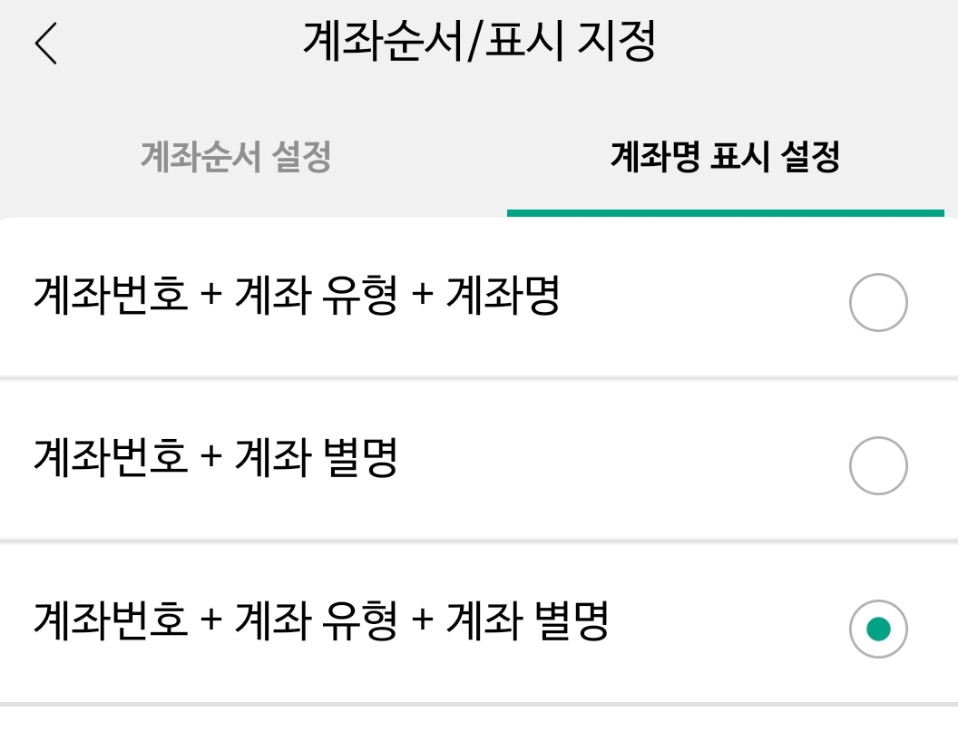 "계좌명 표시 설정"도 가능하네요. 본인이 보시기 편하게 설정하시면 될 것 같습니다.