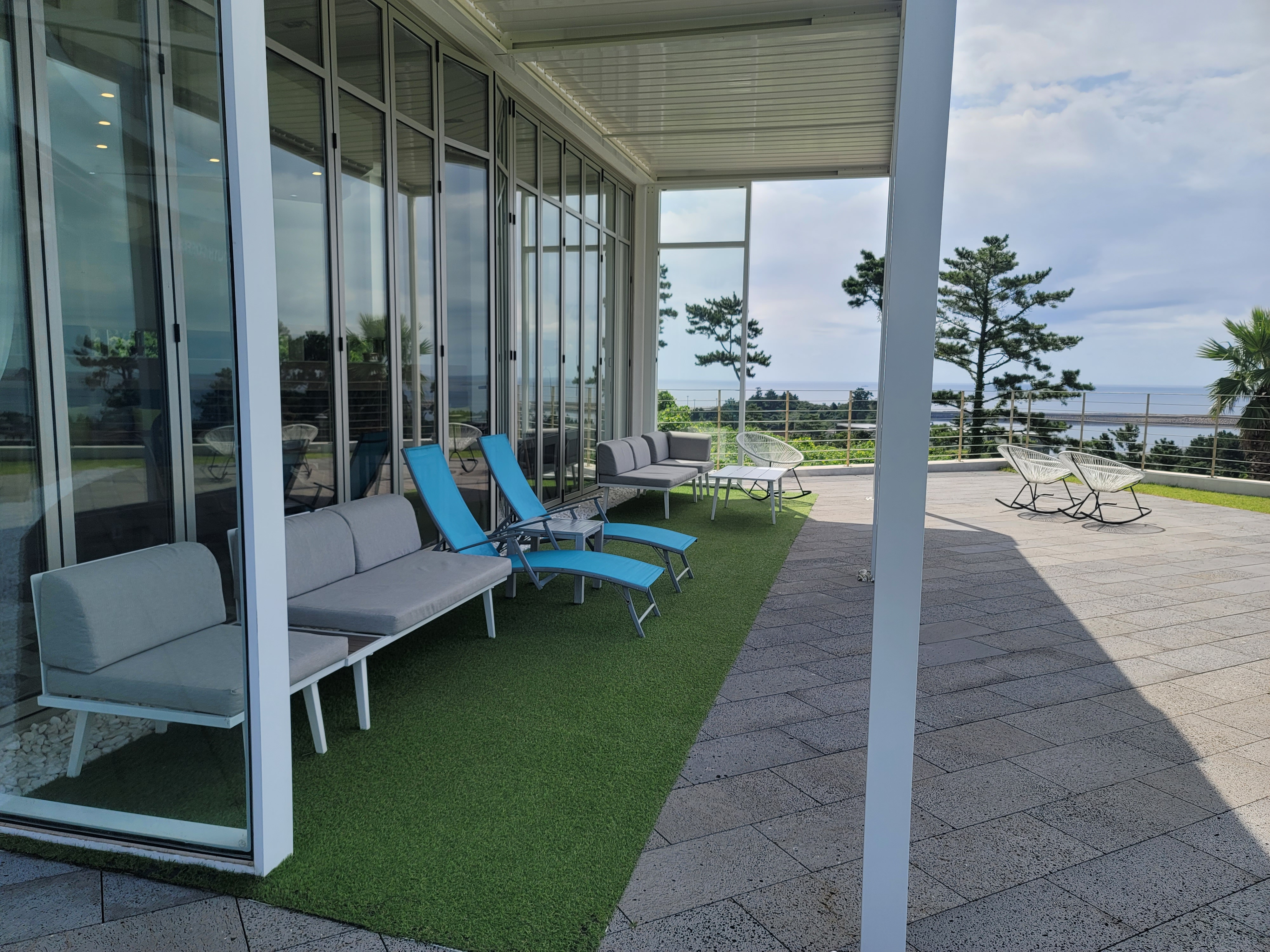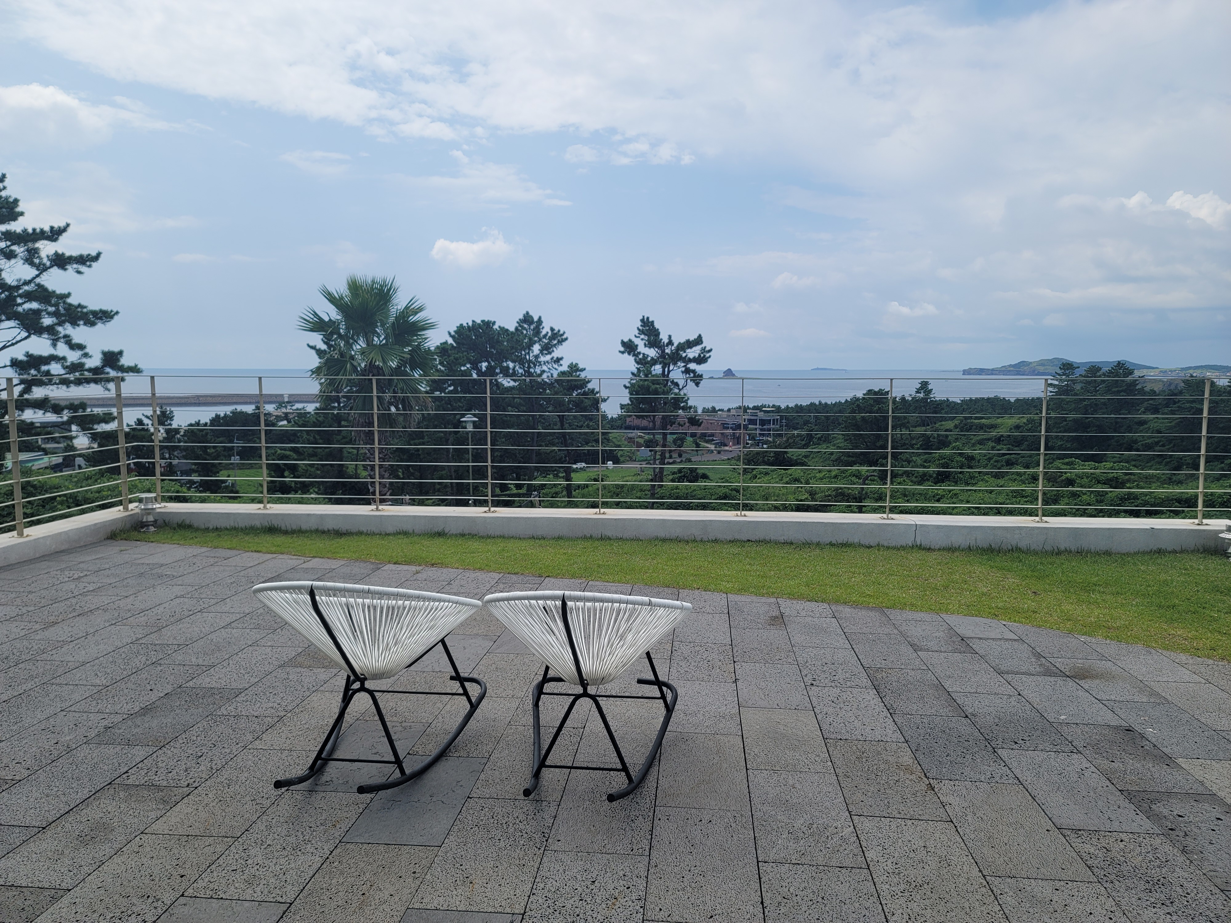 여기 카페는 지대가 높은 곳에 위치해서 멀리 바다 수평선을 시원하게 볼 수 있습니다.