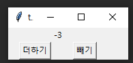 버튼에 표시되는 텍스트는 리스트(str = ['더하기', '빼기])에서 인덱싱하는 방법으로 표시하였습니다. 아직 command는 지정하지 않았습니다.