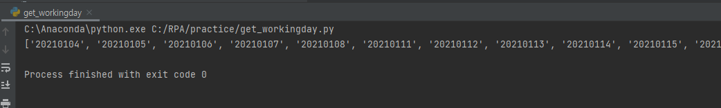 특정기간 동안 뽑은 날짜들을 다시 stock.get_nearest_business_day_in_a_week(d) 을 사용해서 영업일만 리스트로 뽑았다.