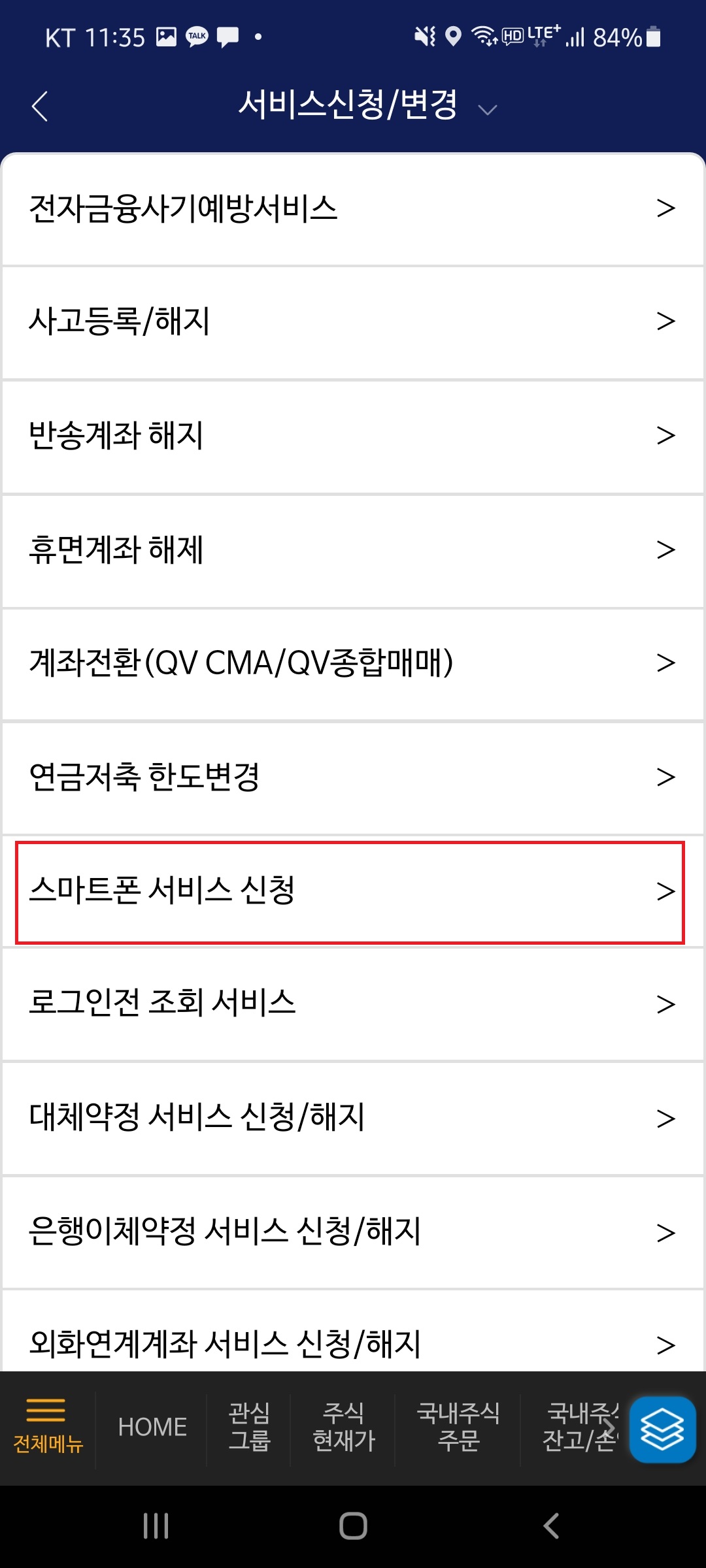 4. "스마트폰 서비스 신청"으로 들어갑니다.