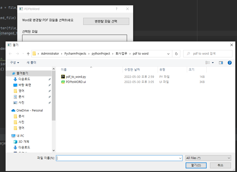 그래서 파이썬을 이용해서 PDF를 Word로 변환해주는 코드를 만들어 보았습니다.