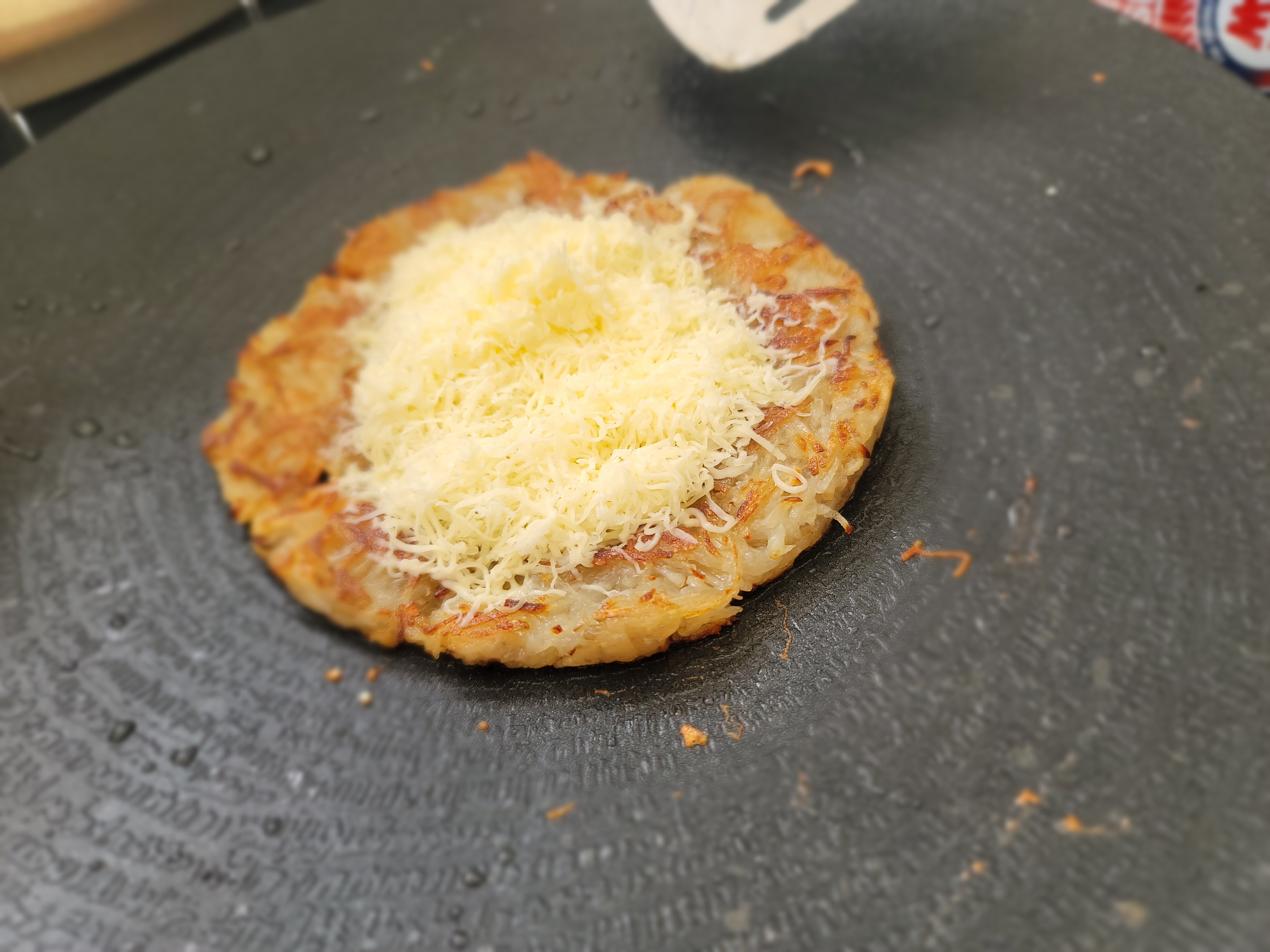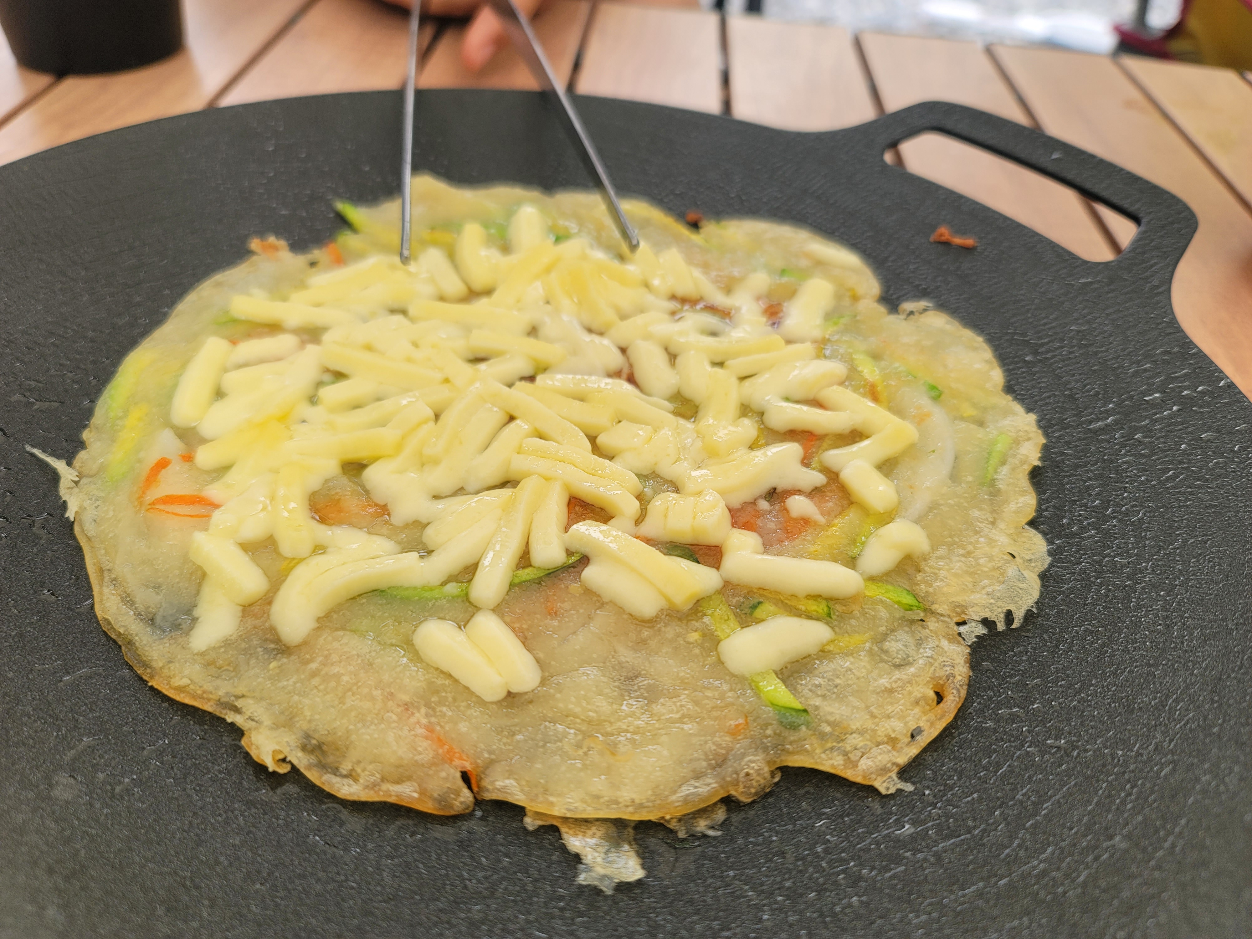 삼촌내 쉐프에서 온 호박전 반죽을 그리들에 부쳤는데, 정말 잘 했다. 가져온 치즈까지 위에 뿌려서 녹여 먹으니 너무나 맛있었다.