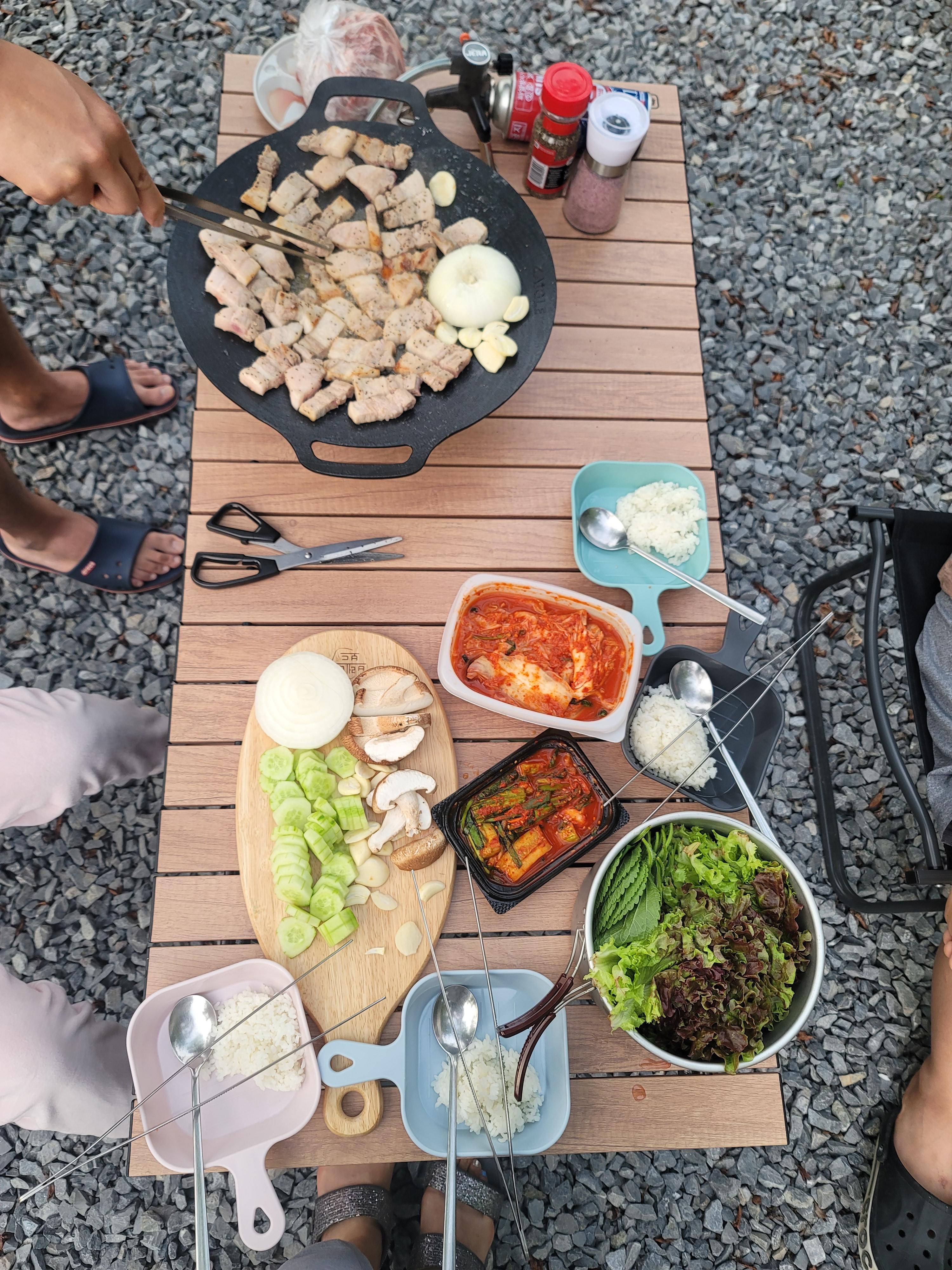 캠핑장에서 먹는 음식은 모두 맛있다. 울 딸은 캠핑가면 특히나 잘 먹는다. 사실 딸 뿐만 아니라 아들, 아내까지 다 잘 먹는다. 우리 가족은 캠핑 체질인가보다.