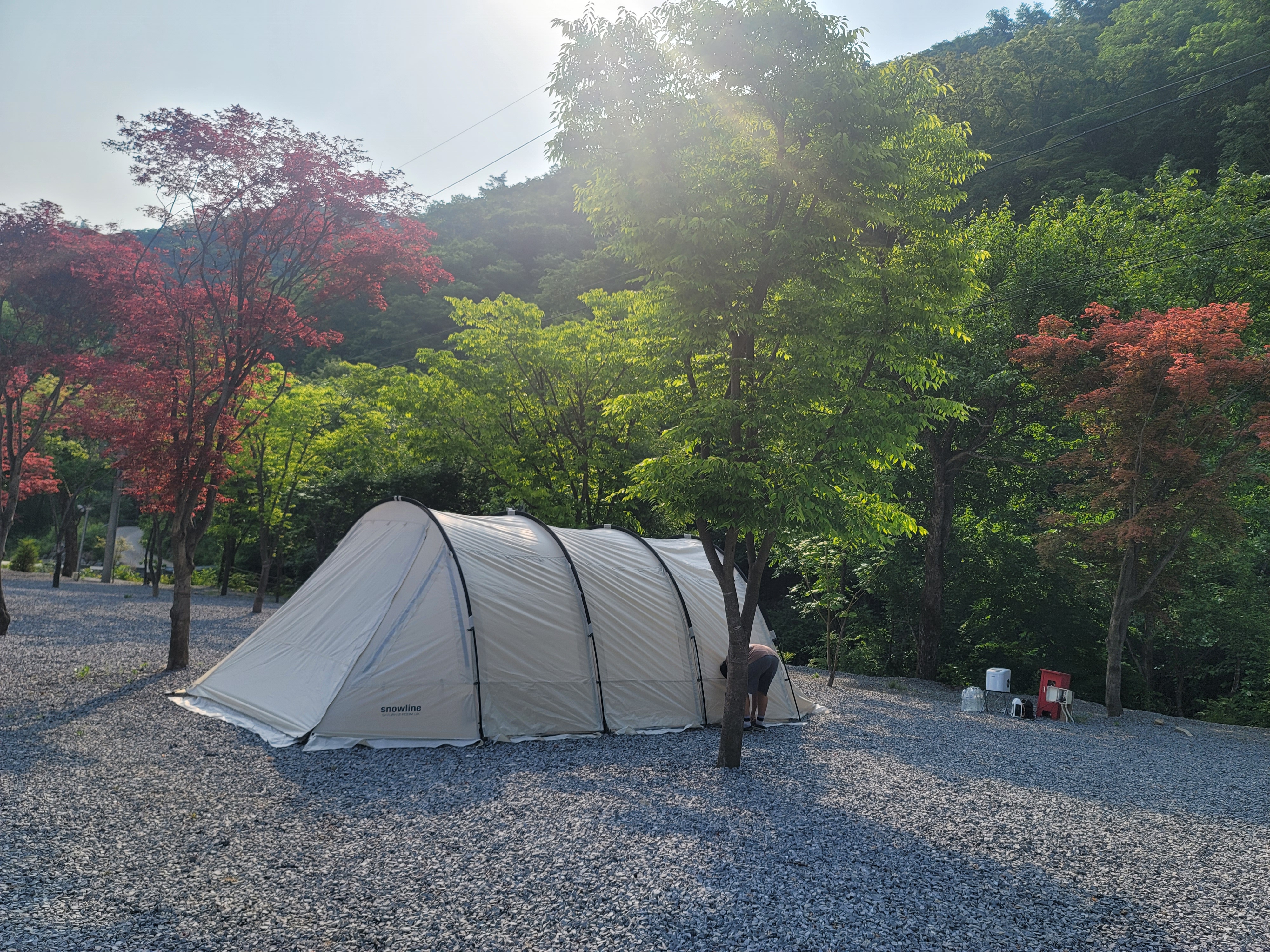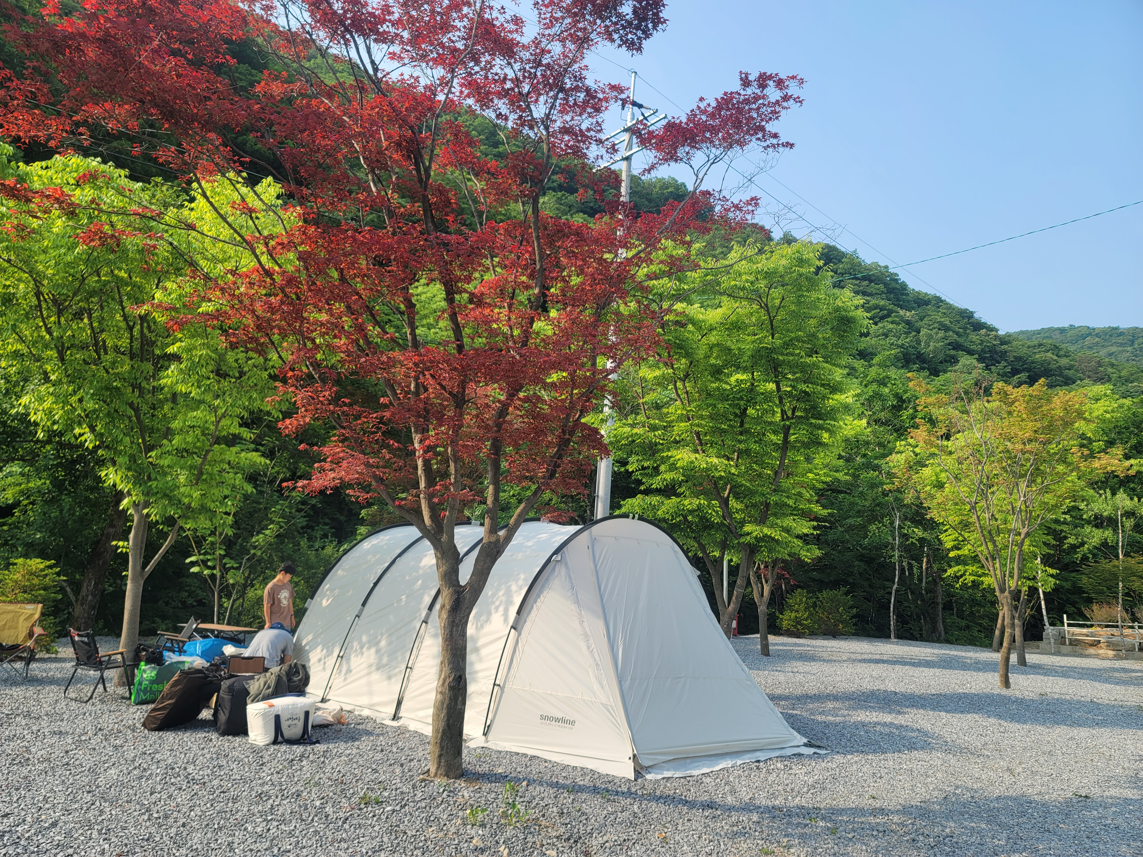여기 캠핑장은 계곡과 가깝다는 점이 장점이다.