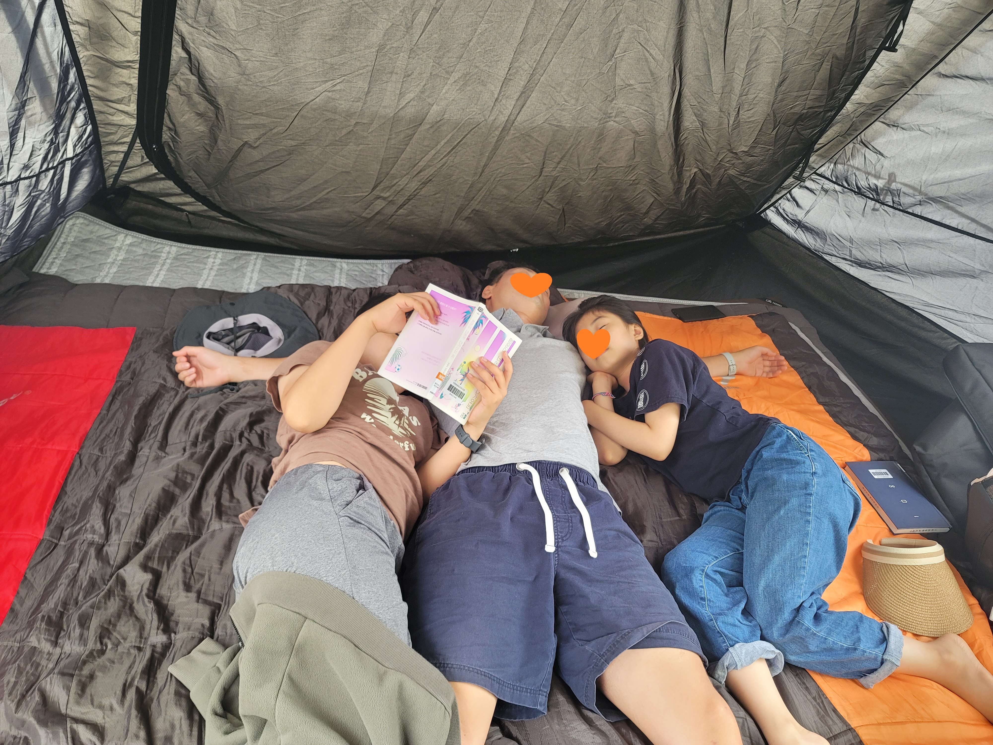 우리 텐트는 볼 수록 잘 산것 같다. 개방감이 좋아서 제법 더운 날씨였는데도 환기가 잘 되어서 텐트 내부가 나름 시원했다.