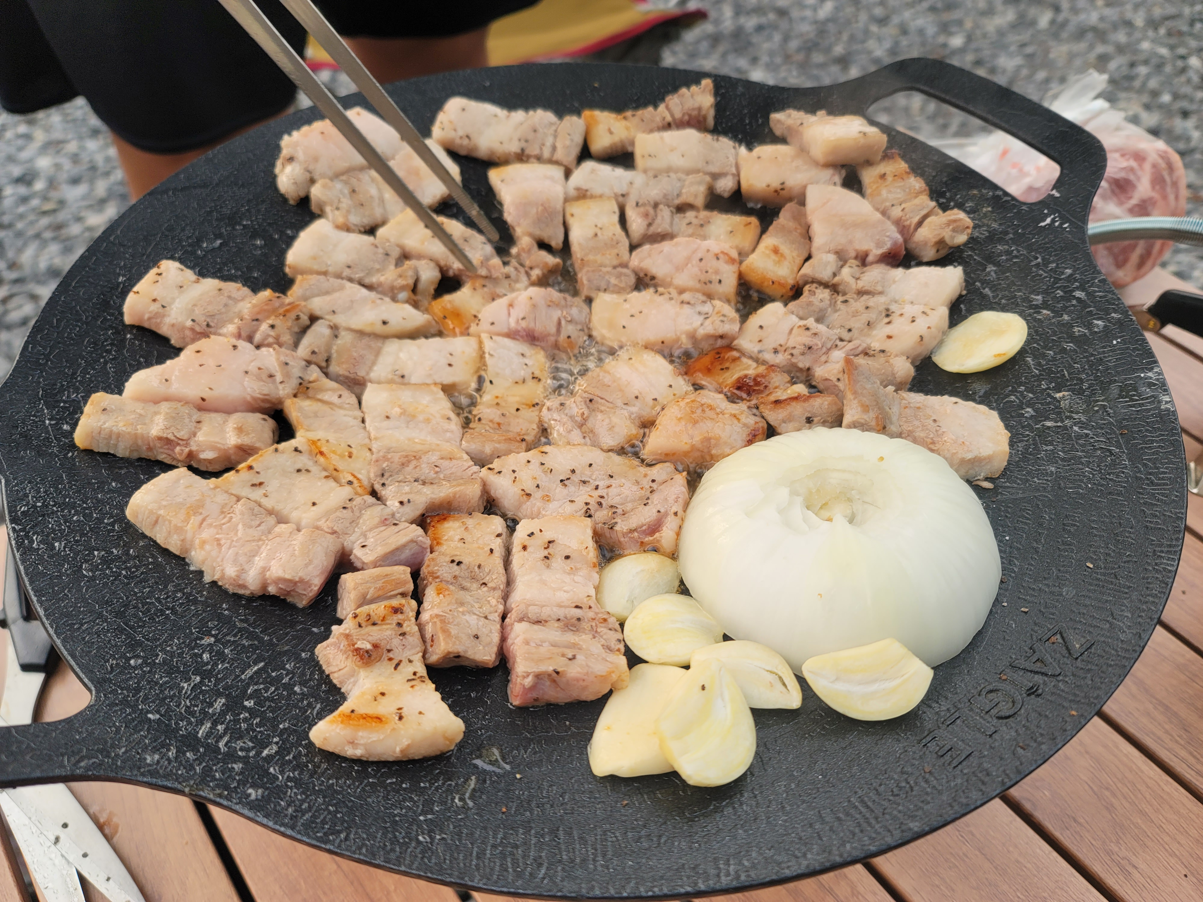 캠핑에서 다른 메뉴를 항상 고민하지만, 삼겹살 만한 음식이 없다.