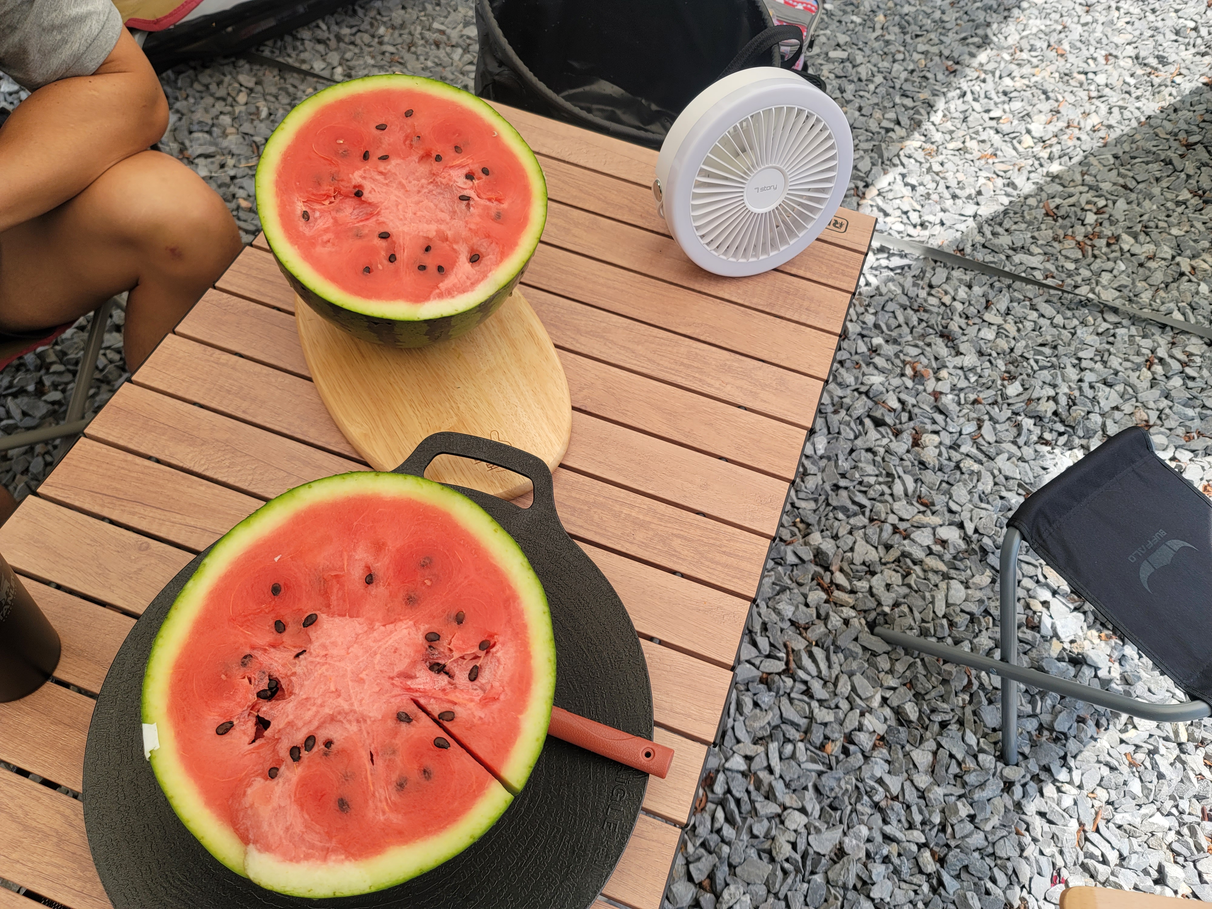 올해 처음 먹는 수박이었다. 테트리스처럼 차에 빼곡히 실은 짐에 수박까지 늘어나서 아내에게 투정을 부렸지만, 항상 그렇듯 결국 아내 말이 맞다.