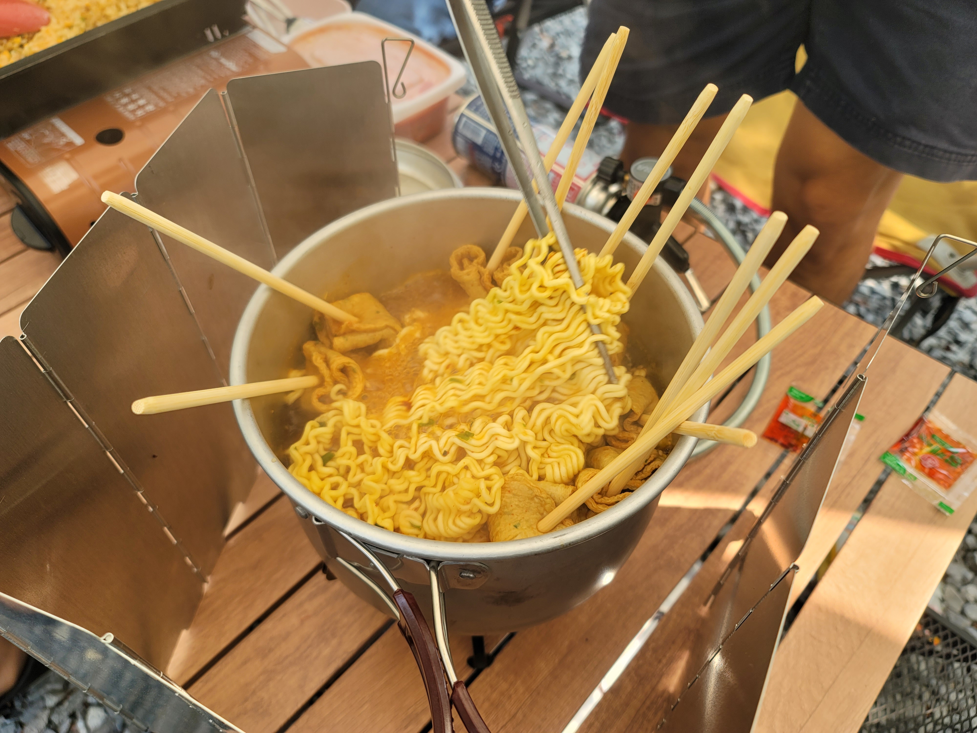 간단하게 먹을 수 있는 라면과 볶은밥을 먹었다. 이정도 허기라면 라면만 먹어도 상당히 맛있을텐데, 어묵까지 넣어서 먹었다. 이 순간 세상 부러울게 없었다.