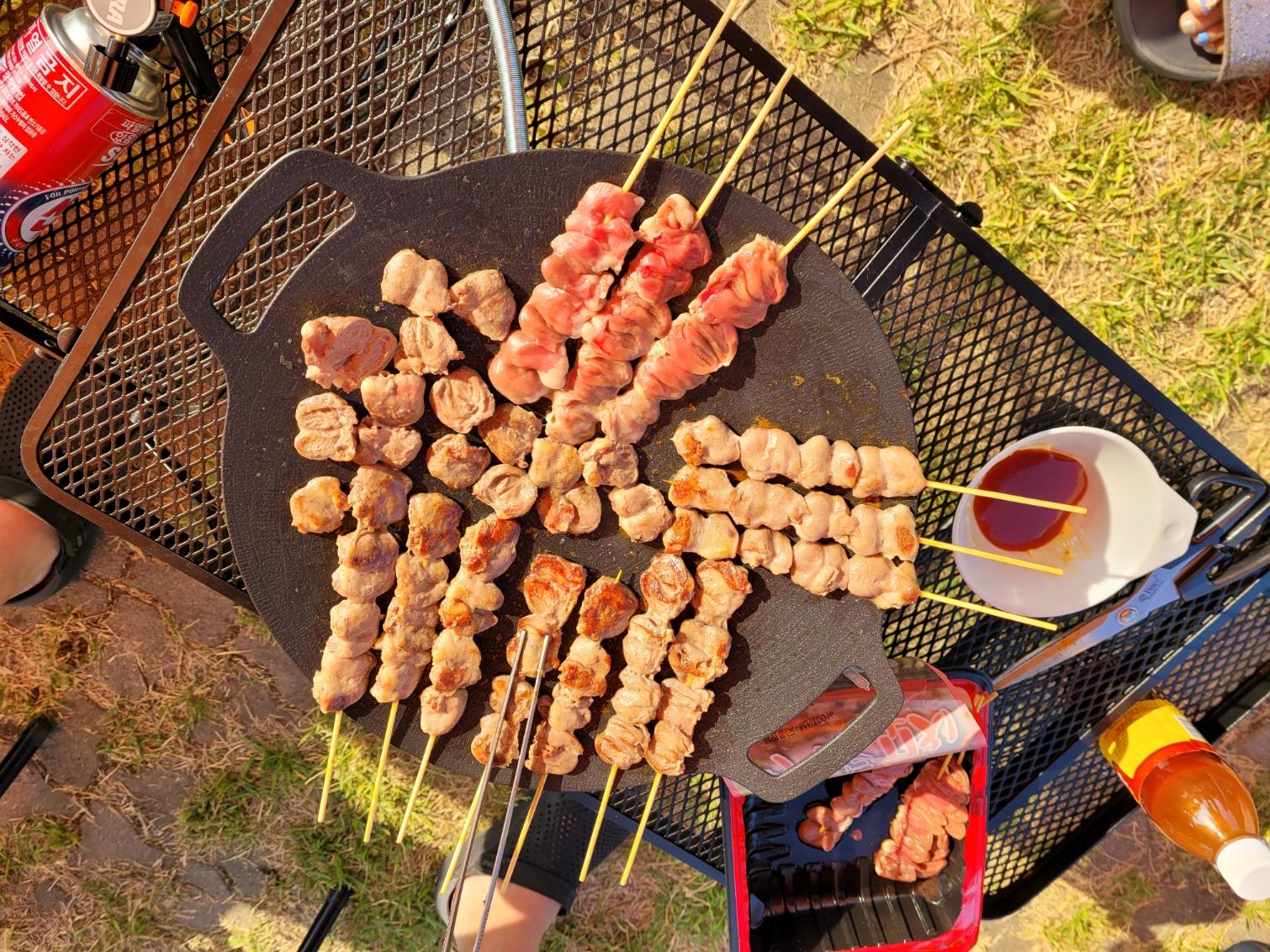 닭꼬치도 그리들에 구웠다. 꼬치류는 그리들 보다는 구이바다가 더 괜찮은 것 같다.