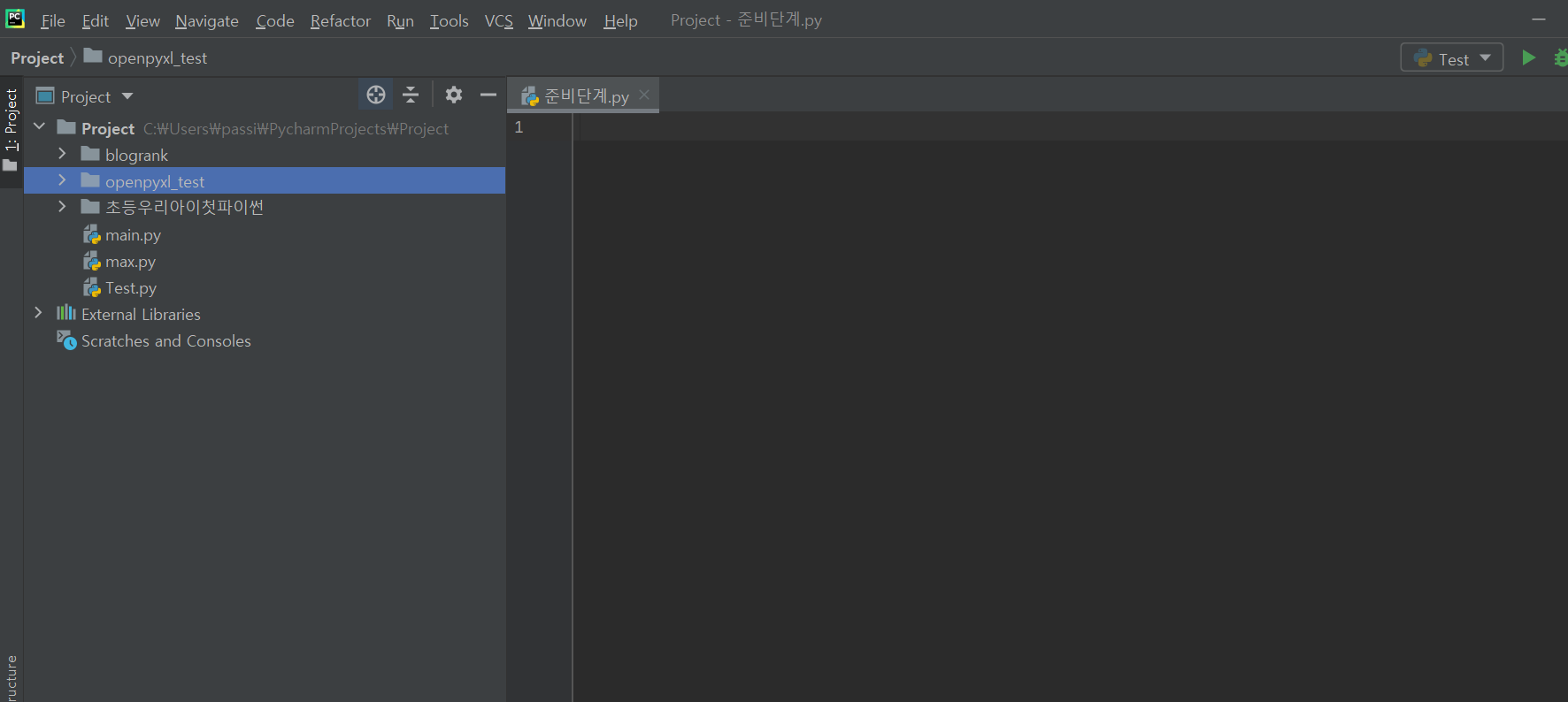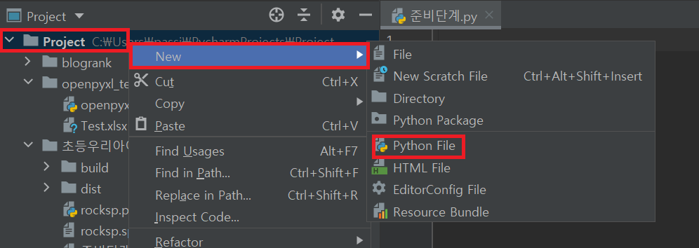 저는 "준비단계.py"라고 만들었어요.