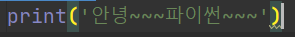 저는 print('안녕~~파이썬~~~') 이라고 입력했어요.