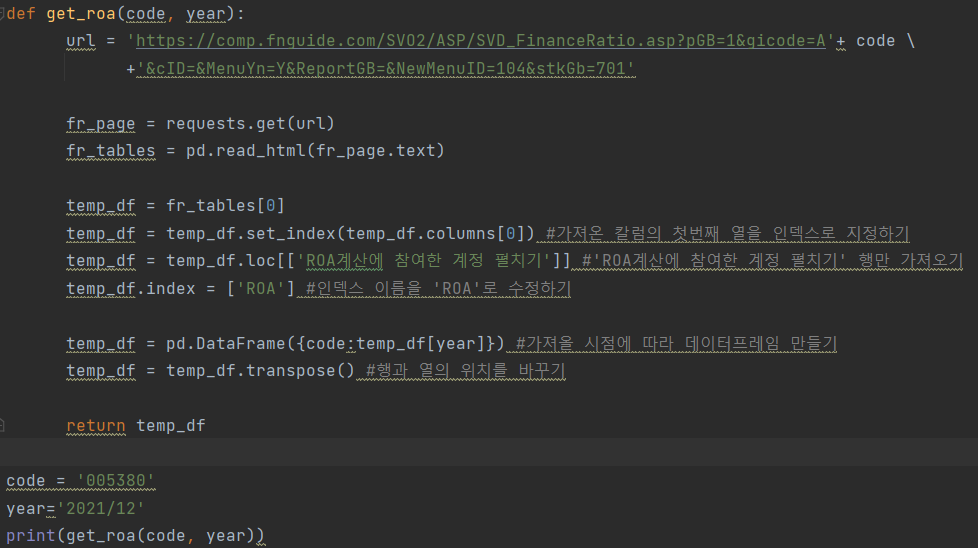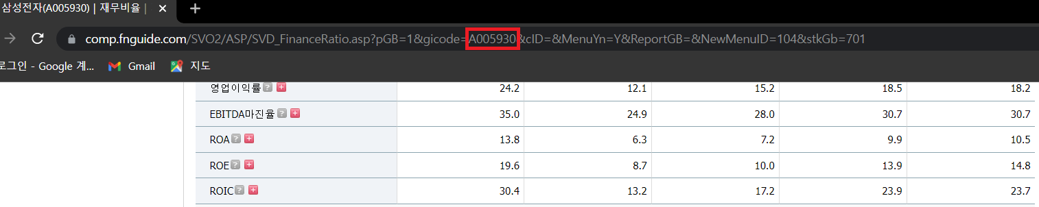 여기서 아이디어를 얻을 수 있습니다. 저 숫자를 바꾸면 원하는 종목의 ROA를 가져올 수 있을 것 같습니다.