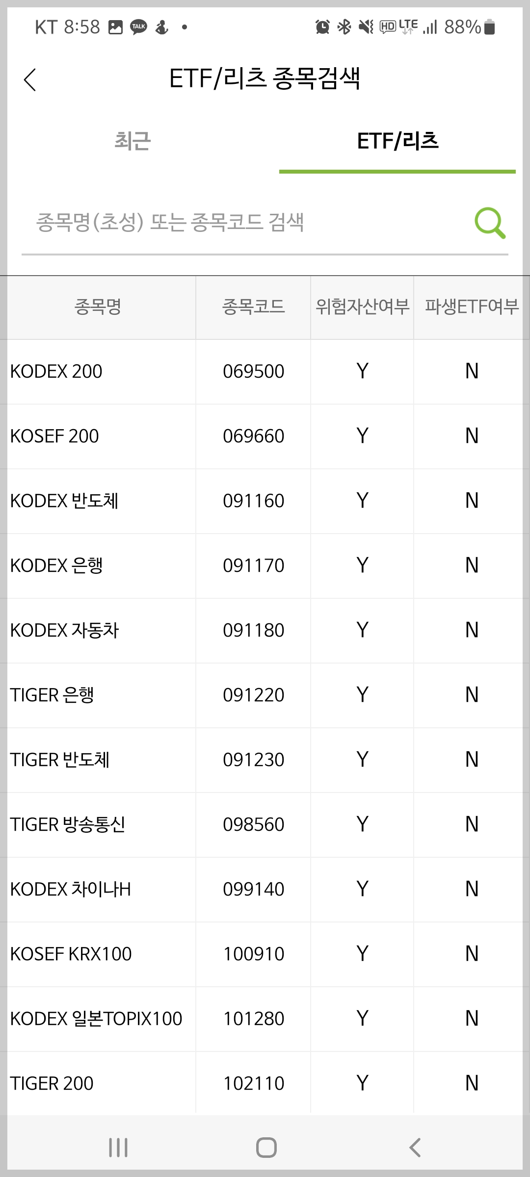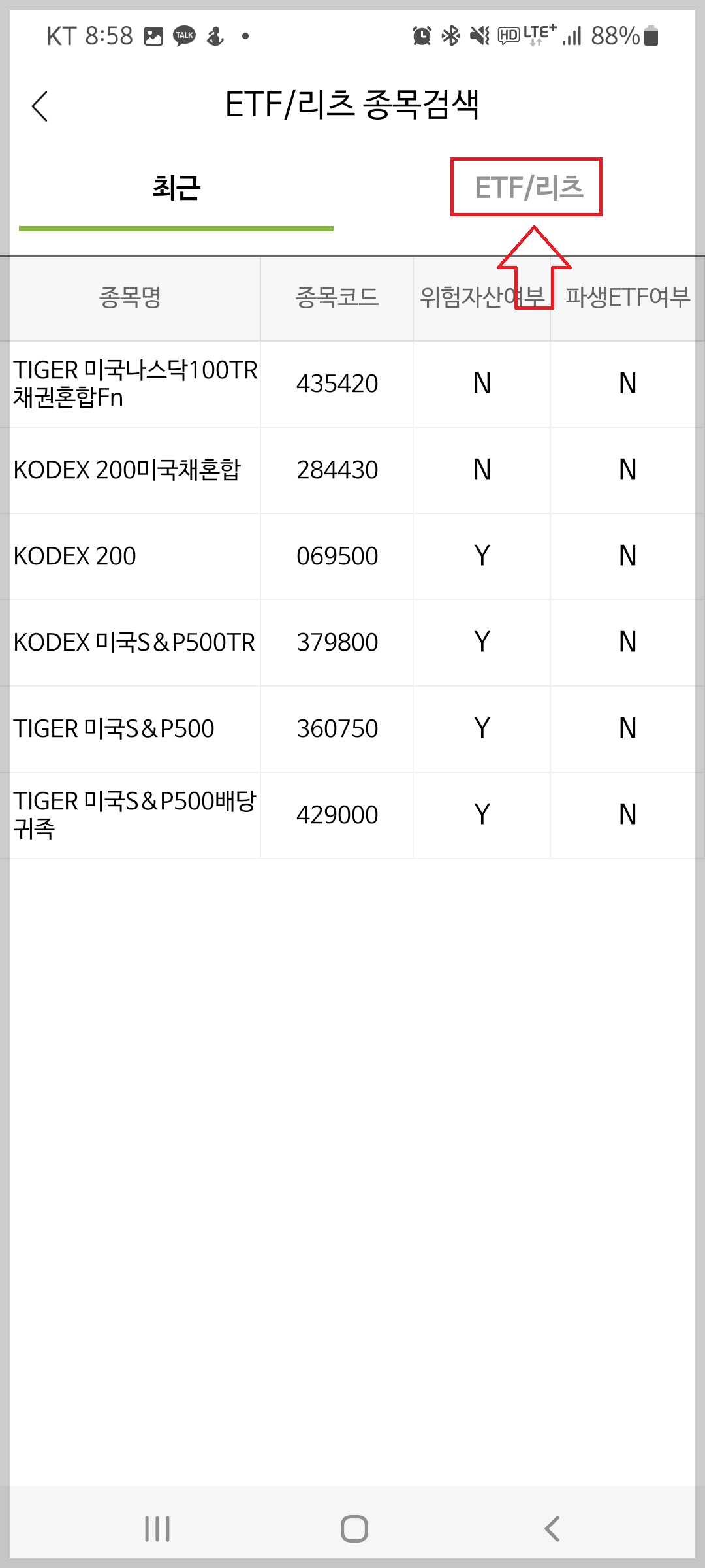 ETF/리츠 종목검색 화면에서 오늘쪽 상단에 'ETF/리츠"를 선택합니다.
