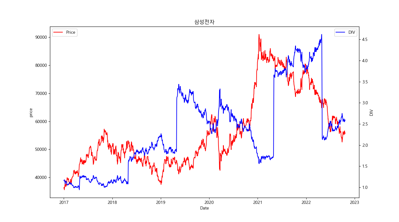 아내와 아들에게 이걸 보여주니 '데칼코마니' 같다고 얘기했다. 주가와 시가배당률을 완전히 반대로 움직인다.