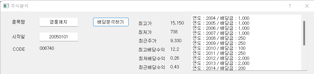 이전에 배당수익률을 이용해서 투자하는 전략을 파이썬으로 구현해 보았다. 2022.10.25 - [취미로 하는 파이썬/투자 실험실 with 파이썬] - 파이썬으로 주식 분석 프로그램 툴 만들기(시가배당률 이