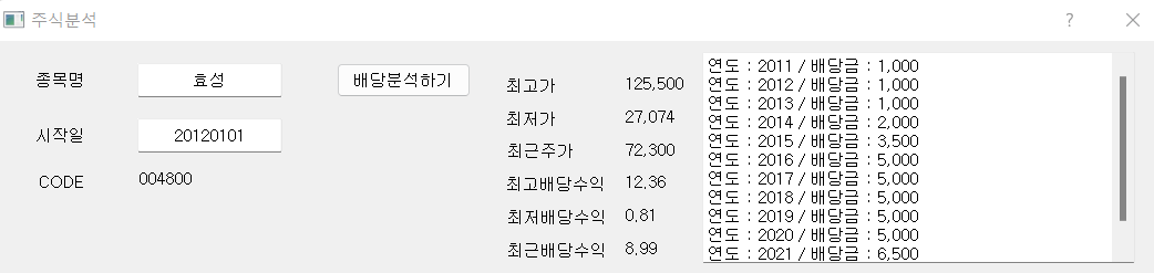 효성은 그나마 배당이 지속적으로 오르니 예측이 가능해 보인다.