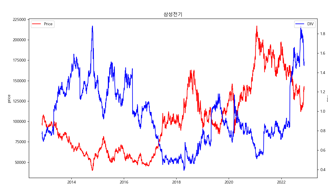 그래서 배당률을 기준으로 삼았다. 배당률은 주가와 대부분 반대로 움직인다. 여기에서 아이디어를 얻어서 배당률이 높을때 사서 낮을때 파는 전략을 구사하기로 했다.