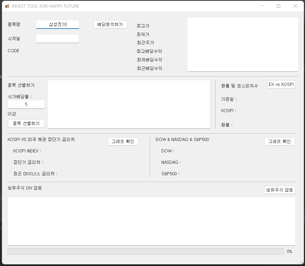 인간이란 동물은 주식투자에 실패하도록 진화가 되어서 주가를 보다보면 잘못된 선택을 하게 된다. 그래서 배당률을 기준으로 최대한 기계적으로 투자를 하기 위해 만들어 보았다.