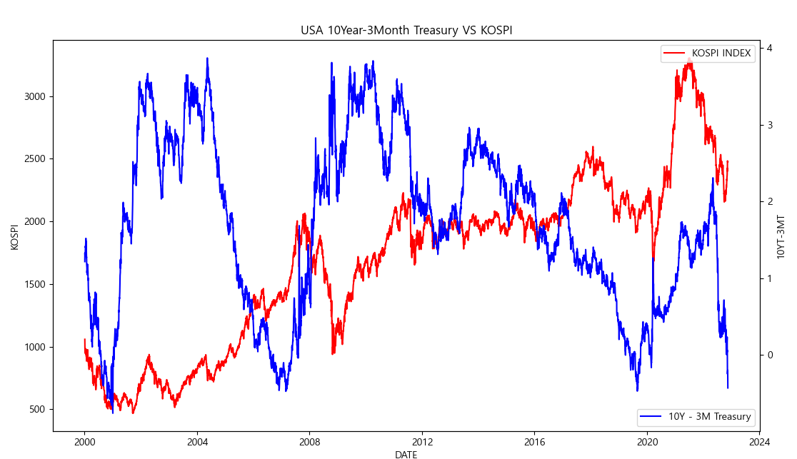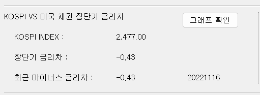 미국채 장단기 금리차와 KOSPI 지수도 확인이 가능하다.
