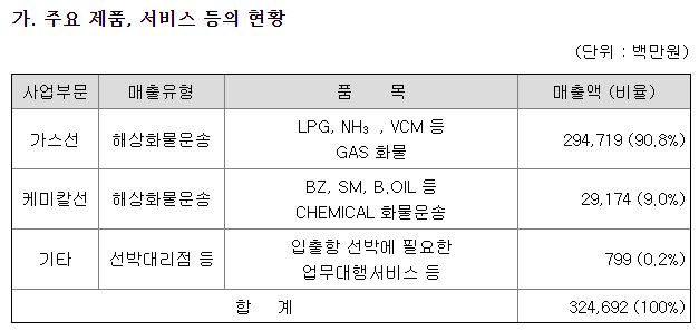 이회사는 해상화물운송을 하는 회사입니다. 그 중에서 가장 규모가 큰 부분이 가스선입니다.