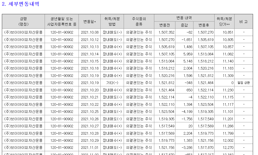 세부 변동내역을 보니 대부분 11,000 ~ 12,000대 사이에 매수가 이루어진 것 같습니다.