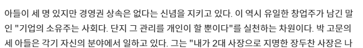 특이하죠? 창업주도 살아있고, 후세도 있는데 왜 피 한 방울 섞이지 않은 사람에게 회사를 맡길까요? 이 부분에 스마트인컴 대표이신 '박영옥"님이 컬럼을 남기신 일이 있더라구요. 무면허 전직 운전수의 아들에게 운전면허를 맡기는 것을 비유하고 우리나라 기업들의 오너 세습 관행에 관한 얘기였습니다. 그러면서 KSS해운의 좋은 사례를 소개하였습니다.