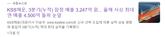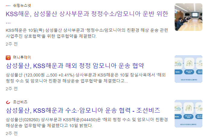 KSS해운은 우리나라 유일한 암모니아 운송회사라고 합니다. 저는 이 부분이 의미가 있다고 생각했습니다.