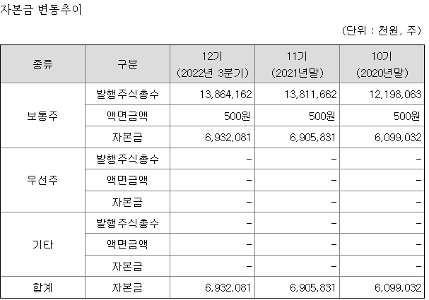 자본금 변동추이도 최근 3년 깔끔하네요. 혹시 증자나 감자할 일은 없겠죠? 돈도 잘 벌고, 현금흐름도 괜찮고, 잉여금도 빵빵하니 갑자기 현금이 필요할 일은 없다고 생각해도 되겠죠?