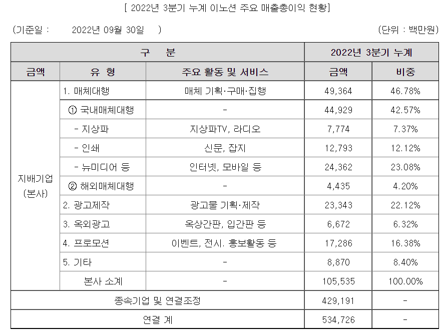 회사의 매출구조는 위와 같습니다. 광고업계를 몰라서 그런지 저는 다 광고같이 보이네요.