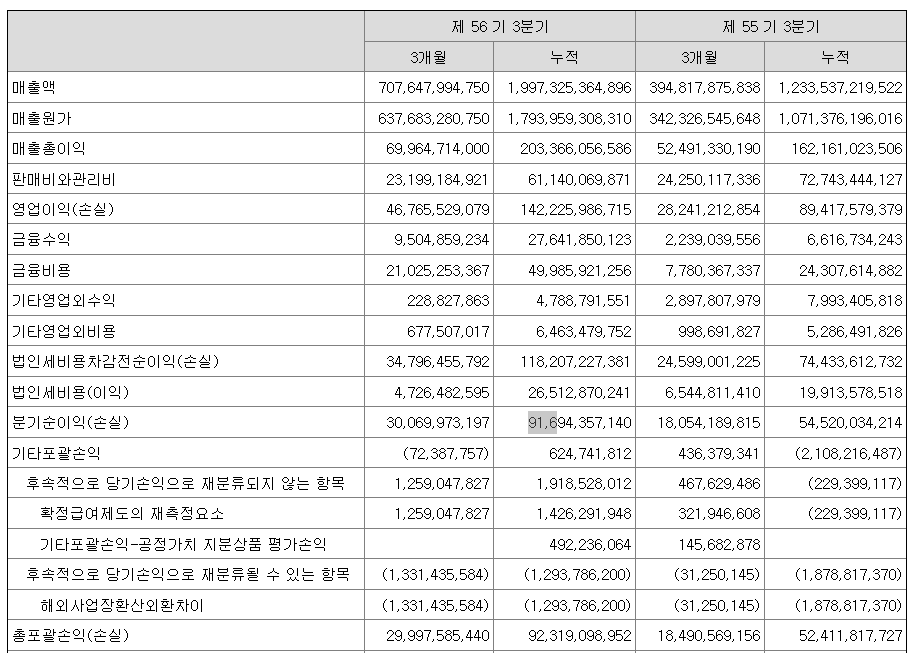 3분기까지의 실적만 보더라도 총포괄손익이 작년의 거의 2배 정도 됩니다.