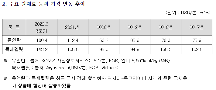 당연히 원료값도 많이 올랐습니다. 하지만, 발전업체는 원료를 장기계약으로 구매하기 때문에 큰 영향은 없을거라 봅니다.