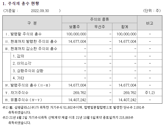 감자 등 특이한 사항은 없네요. 다만 합병분할로 발생한 단수주와 신탁계약으로 자사주를 매입했네요. 목적은 당연히 주주가치제고라고 했겠죠? 다른 목적이 있을거면서...